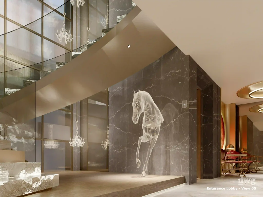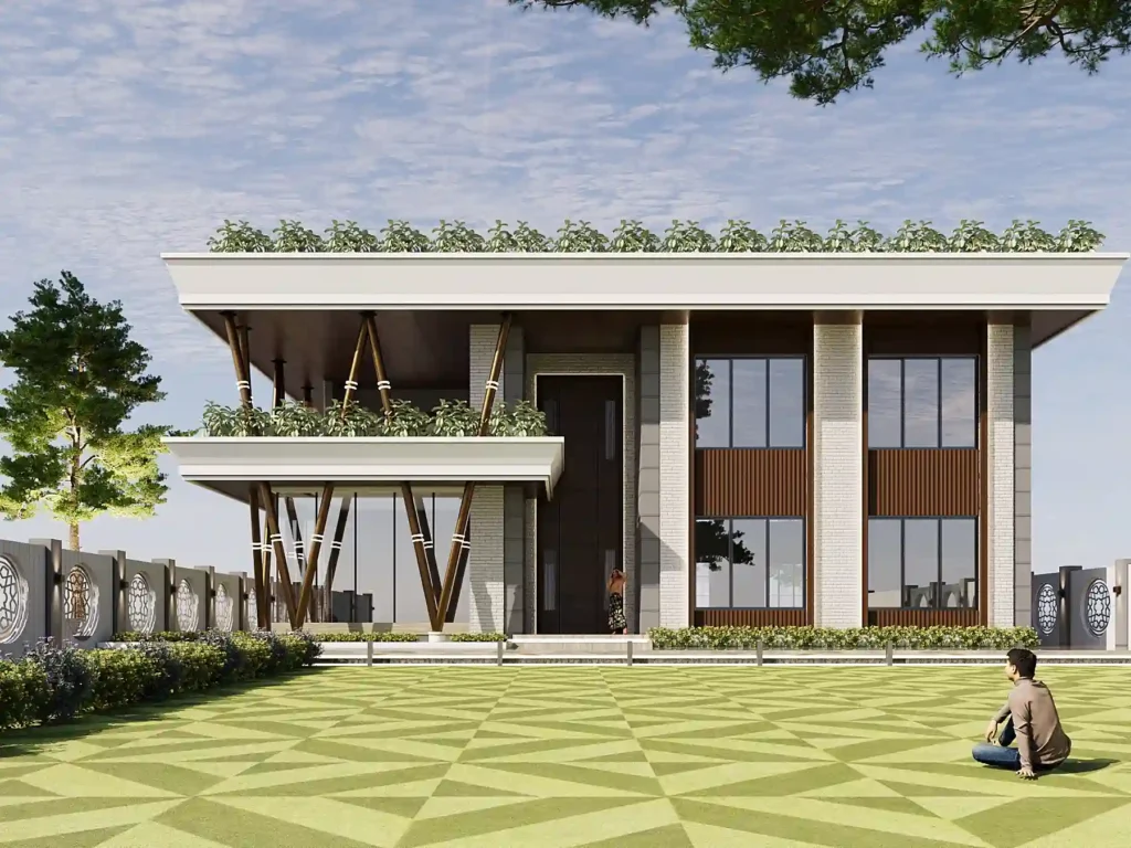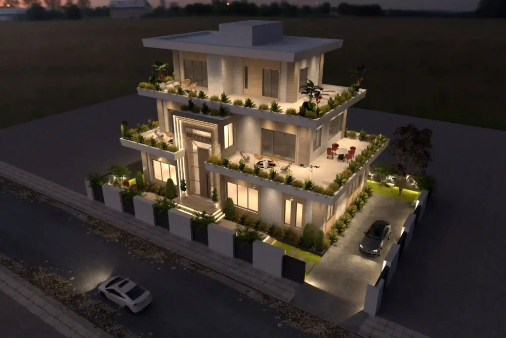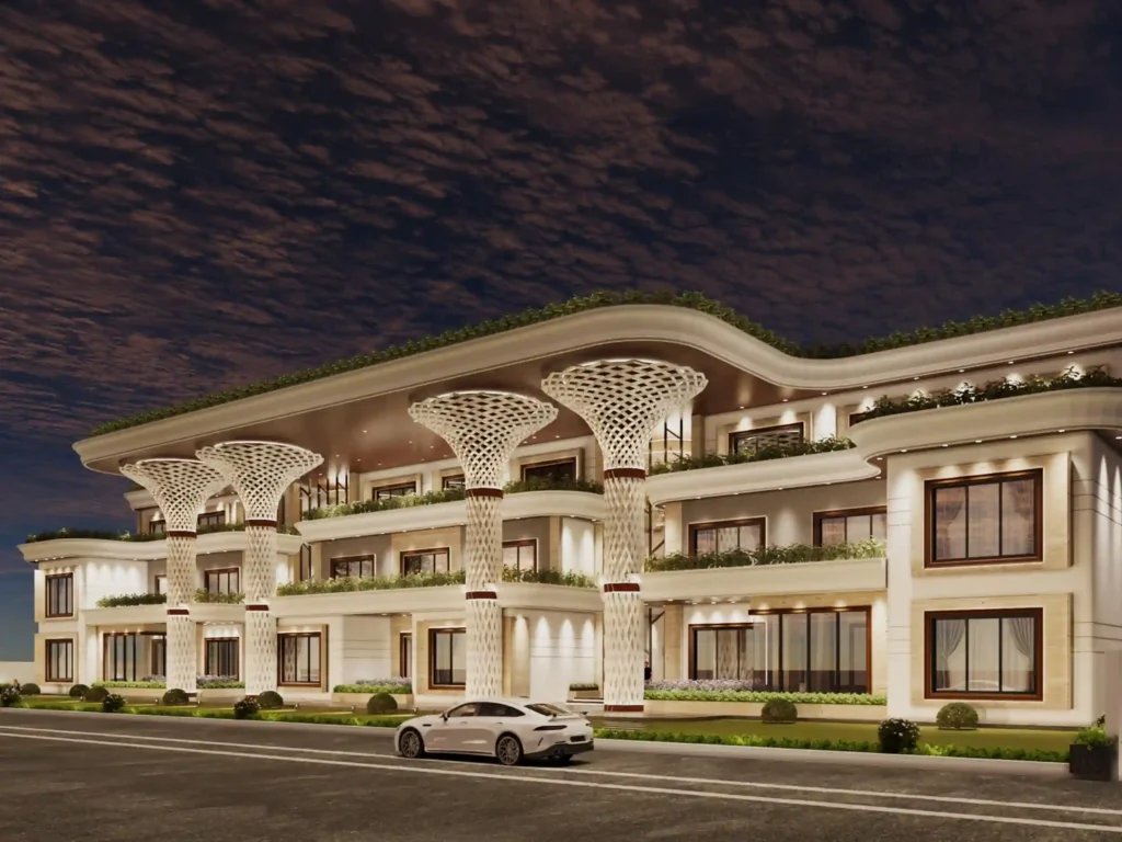 This residence is a masterpiece of modern architecture, blending grandeur with sustainability. Its striking facade, featuring iconic nature-inspired columns, exudes elegance and structural integrity.